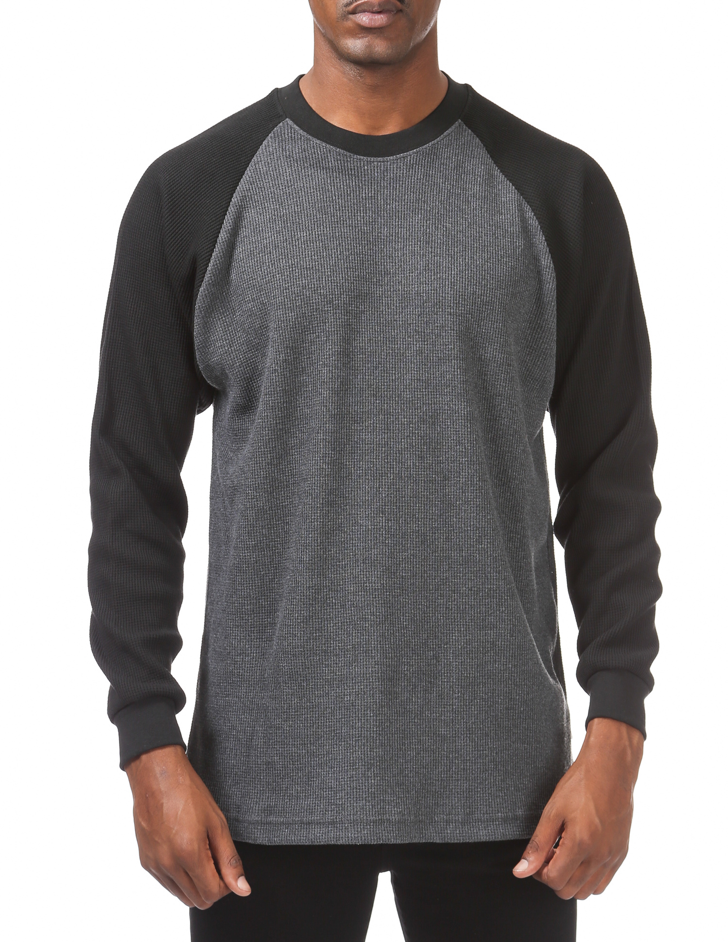 PROCLUB men’s Heavyweight Baseball Raglan Thermal Long Sleeve Shirt features premium thick waffle knit construction. Ribbed neck and cuff made with lycra to maintain thickness after wash and fashionable baseball style raglan sleeves.
