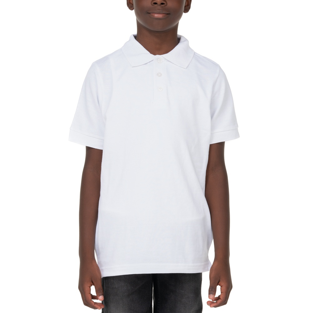 The youth pique polo shirt fashions a three button placket design, flat knit collar and rib cuffs, and a vent tail for mobility and style.